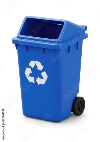 Blue recycling bin on wheels
