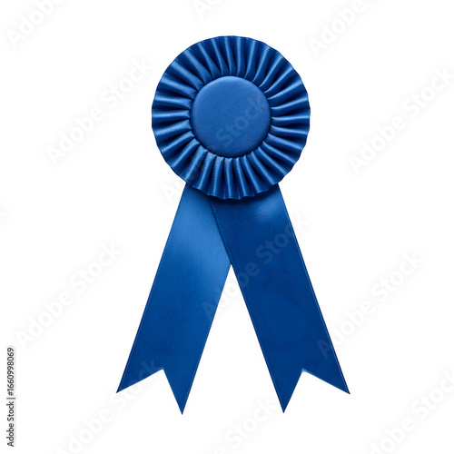 Blue ribbon with a white border isolated on white or transparent background. PNG