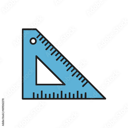 Blue Right Triangle Ruler with Measurement Markings and Hole