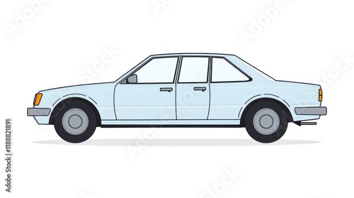 Blue Sedan Car Drawing with Modern Design on a White Background