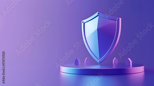 Blue shield and padlocks on a podium against a purple gradient background, representing security and protection concept.
