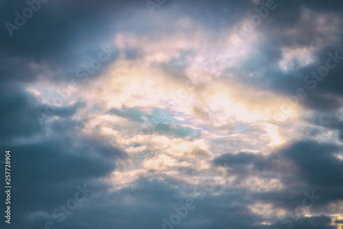 Blue sky among dark clouds