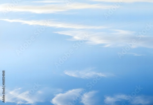 Blue sky with wispy clouds reflected in water,Clean Blue sky Background
