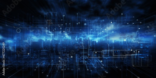 Blue Technographic Line Diagram, Unveiling a Futuristic Technology Concept, Where Abstract Lines Merge with Digital Innovation in a Tech-Forward Design