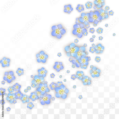 Blue Vector Realistic Blue Petals Falling on Transparent Background. Spring Romantic Flowers Illustration. Flying Petals. Sakura Spa Design. Blossom Confetti. Design Elements for Wedding Decoration.