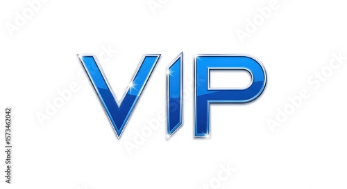 Blue VIP text with metallic border, representing luxury. Exclusive content for special members and premium access concept.