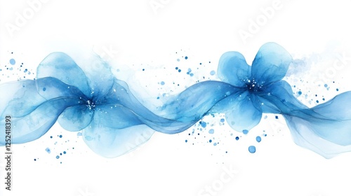 Blue Watercolor Floral Design With Elegant Waves and Delicate Splatters on White Background