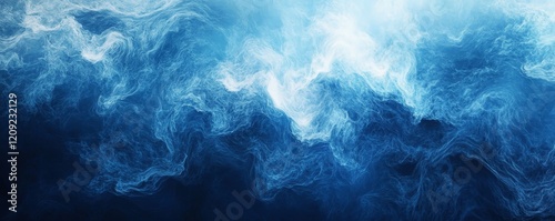 Blue white glowing gradient wave on dark background, vibrant noise texture header, Generative AI