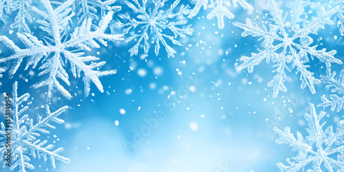 Blue Winter Jacket Covered in Snowflakes, Cold Weather Concept