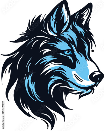 Blue Wolf Head Vector Art Illustration
