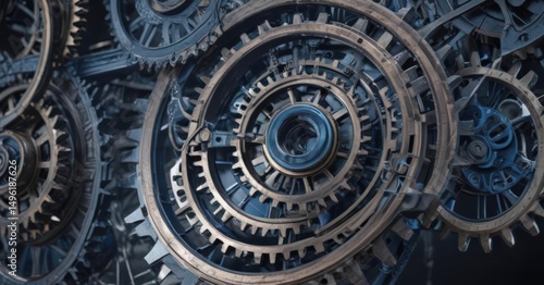 Blueprint style image showing intricate gears and cogs , altered, texture