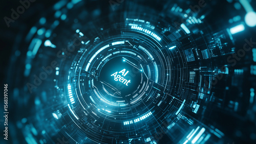 Blue-toned corporate background with tech-inspired digital elements and glowing text AI Agent at the center, symbolizing modern AI integration