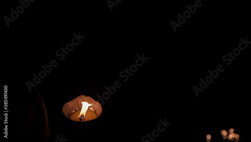 Blur candles in the dark background.