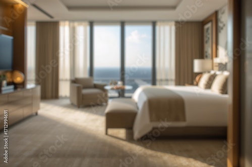Blurred abstract luxury bedroom design in a high-end resort setting