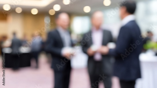 Blurred business meeting, suited Asian males exchange ideas; synergy flow during Global Entrepreneurship Week, fueled by innovation zeal