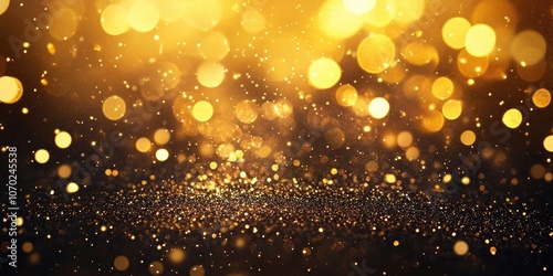Blurred Christmas background featuring gold-colored bokeh lights.