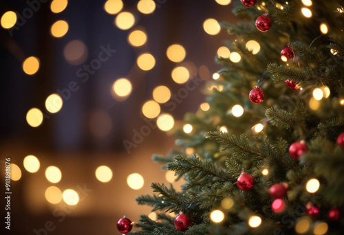 blurred christmas lights with warm golden bokeh effect, christmas lights, tree christmas light