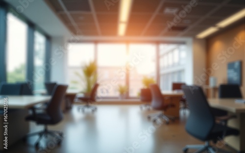 Blurred empty space office. Abstract light bokeh at office interior background for design. High quality