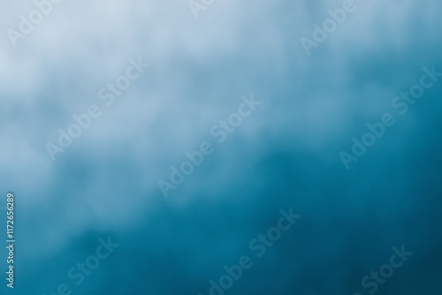 Blurred image of a teal and white sky, resembling clouds or fog. Soft gradient transition from light to dark. Abstract and dreamy atmospheric effect.