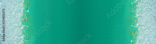 Blurred in soft focus horizontal panoramic background with aquamarine foam