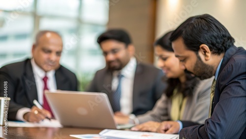 Blurred Indian executives at seminar table — collaboration and strategy meeting