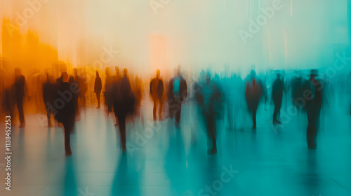 Blurred Silhouettes of People Walking on a Bustling Urban Street at Sunset - Perfect for Modern Lifestyle and Urban Culture