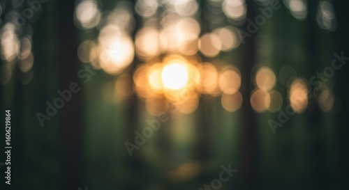 Blurred sun shining through trees in a forest