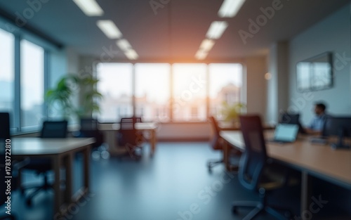 Blurry office backdrop. Generative AI. High quality