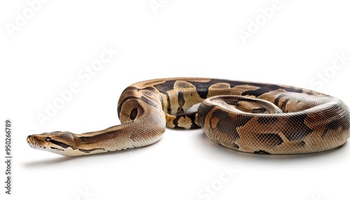 Boa constrictor snake also known as the common boa, is a species of large, non venomous, heavy bodied snake that is frequently kept and bred in captivity. isolated on white background with copy space