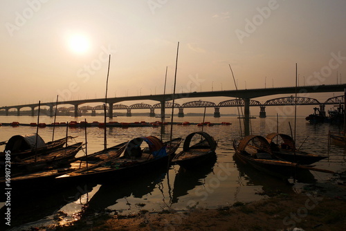 Boats on a river in Bangladesh. Ganges River Boat Transport