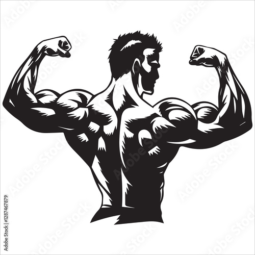 bodybuilder silhouette vector, Male bodybuilder silhouette front view black filled vector Illustration icon. Muscleman vector. Muscle builder silhouette.