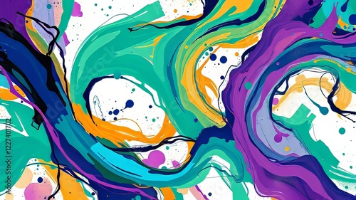 Boho Abstract Painting - Vibrant Flowing Lines & Colors