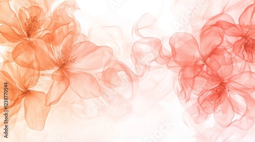 Boho floral watercolor soft delicate. A soft, ethereal design featuring delicate, translucent flowers in shades of orange and pink against a light background.