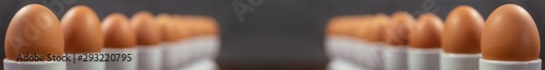 Boiled Eggs in Egg Cups in Lines on a Table Panoramic Web Banner