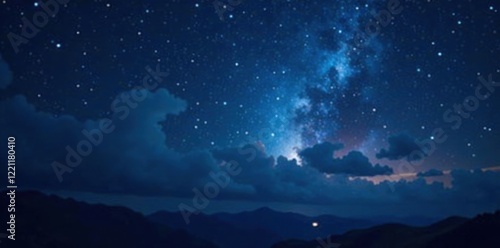 Bokeh effect on a dark blue night sky with stars and constellations, night, blue