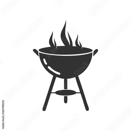 Bold black BBQ grill with smoke silhouette vector illustration clipart on white background ideal for summer BBQ graphics.