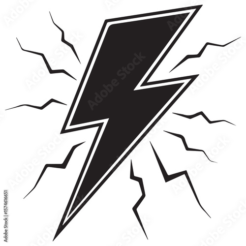 Bold black lightning bolt symbol with radiating jagged lines on a clean white background