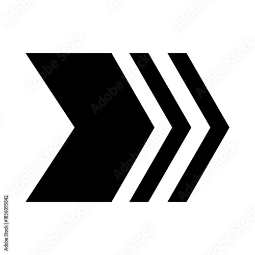 Bold Black Triple Chevron Arrow Set, Heavy Minimalist Vector Icon for Fast Forward, Next Step, Direct Action, Process Flow, Web Navigation, and High Speed Motion Graphic on Isolated White Background