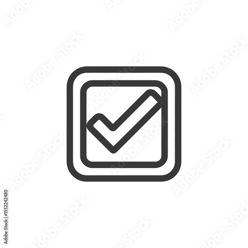 Bold Check Mark Icon in Double Rounded Square Frame, Dark Gray on White