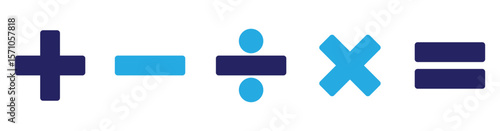 Bold Colour Math Symbols – Plus, Minus, Divide, Multiply, Equal Icons on White Background