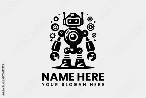 Bold Robot Head Graphic. Modern Vector Logo Design