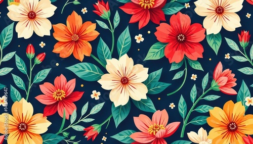Bold, vibrant floral pattern, ideal for summer promotions , bright, flowers