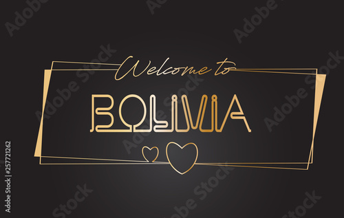 Bolivia Welcome to Golden text Neon Lettering Typography Vector Illustration.