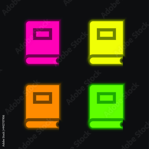 Book four color glowing neon vector icon