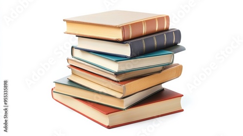 Books piled on white