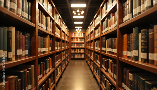 Bookshelves in a library corridor showcasing organized literature for blogs, educational websites, interior design inspiration, stationery, and reading awareness materials