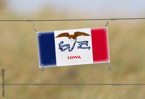 Border fence - Old plastic sign with a flag