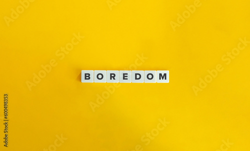 Boredom Word and Banner. Letter Tiles on Yellow Background. Minimal Aesthetics.