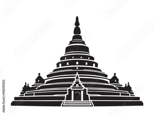 Borobudur Temple Line Art Set Clean Black and White Design