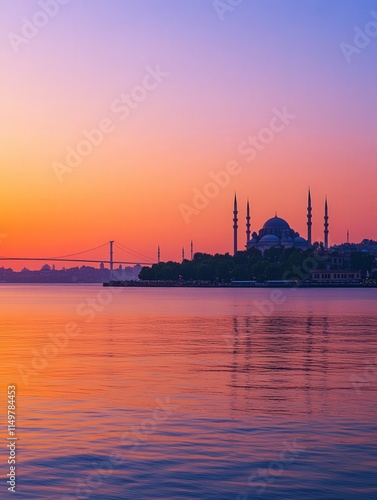 Bosphorus Strait, with the Istanbul Bridge crossing the water in the distance.